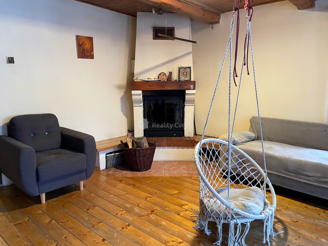 V přízemí se nachází vstupní zádveří a chodba, plně funkční kuchyně s jídelním koutem, prostorný obývací pokoj, kterému dominuje krb - ideální pro příjemnou atmosféru a teplo v zimních večerech, další samostatná ložnice a koupelna společná s WC.